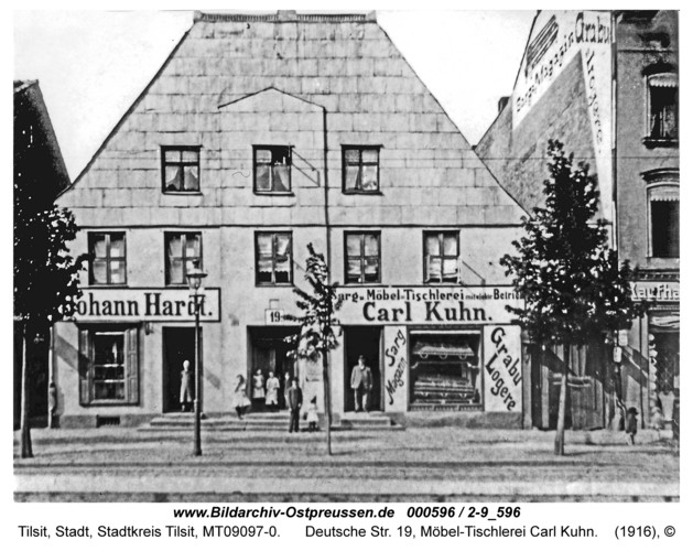Дом № 19 - один из симпатичных домиков Тильзита. Архитектура его почти совершенна. Здесь слились усилия по экономному и, одновременно, парадному обустройству дома, эффект которого достигается посредством трапециевидной крыши, равной по высоте двум этажам дома. В этом доме располагался магазин мебельного мастера «Карла Куна». Здесь продавались деревянные кровати для здравствующих, и «ложи» для усопших - гробы
