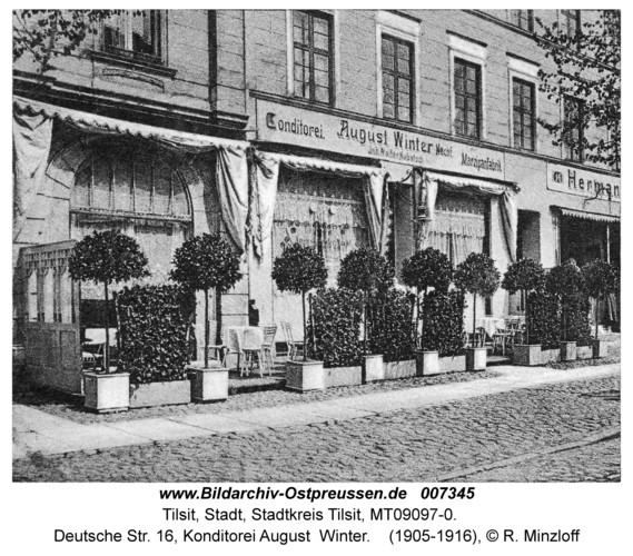 В дом № 16 размещалась известная в Тильзите кондитерская «August Winter». Популярнось к ней пришла не из- за роскошных интерьеров, а потому, что считалась очень удобной для разговоров тет-а-тет.