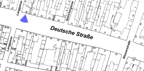 Дом № 38 - последний дом на правой стороне Дойчештрассе. Фасад, выходящий на улицу, благодаря покатой крыше, производит впечатление приземистого, широкого усадебного строения.
