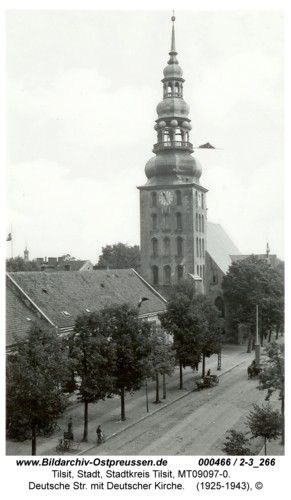 Когда-то очень давно, в середине 16 век, а именно 2 декабря 1522 года, в здании кирхи был зачитан указ герцога Альбрехта дарующий поселению Тильзе городской статус. Это происходило в присутсвие важных персон:новоявленного городского бургомистра Готлиба Клемма его компаньона Конрада Ферспаха, а также суда в лице шлоссмейстера Хиеронима Плато и его компаньона Ганса Баумгартена.