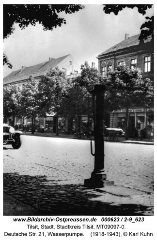 Дом № 21 на углу Шпейхергассе (Speichergasse) скоре всего был похож на виллу каким–то образом попавшую в тесную городскую застройку. Дом для комфортного проживания богатой семьи с большими претензиями, не отступая ни на йоту от линии застройки, не нарушал градостоительной темы улицы.Фронтон дома украшала скульптурная группа, главная фигура которой держала жезл (кадуцей), олицетворяющий торговлю.C 1897 года дом принадлежал Минне Шульц. Ее сын - Отто Шульц был владельцем мебельной фабрики.