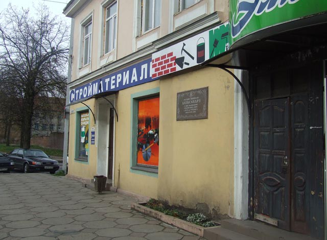 Сегодня этот дом тоже работает на "созидание" - здесь располагается магазин строительных материалов.