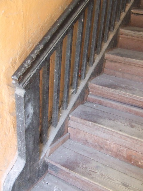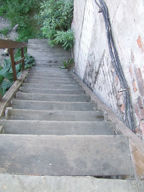 Можно пройти вдоль фасада и, увидев широкую деревянную дверь, заглянуть за нее. Времена менялись, а здесь ничего не усовершествовано, и слава богу! Замкнутый цельный мир.Все так же тянется вверх облезлая, деревянная лестница, робко показывая таинственного назначения замурованную дверку. Длинный коридор заканчивается еще одним выходом на лестницу, круто спускающуюся во двор. Во дворе сколько бы не было поздних построек советского типа, а раннетильзитские стены - могут доставить наслаждения, и оставить вас с вечным вопросом - чему служила заростающая травой кирпичная стена с остатками ровно расположенных некогда деревянных подпорок. А еще выше, на фоне голубого неба, можно, среди городских панелек, увидеть барокальную башенку моста Луизы