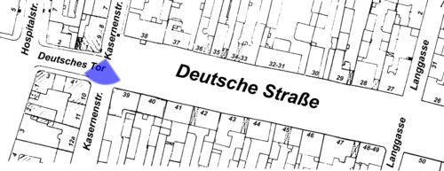 За Конным рынком улица была обустроена доходными домами в стиле эклектики. Эта узенькая часть улицы по-старинке называлась «Немецкие ворота», в память о тех временах, когда город был окружен крепостной стенойи попасть в город можно было через ворота. Отсюда дорога вела в замок Шплиттер, который нахадился в районе нынешной Речной улицы. И далее в Лабиау (Полесск)